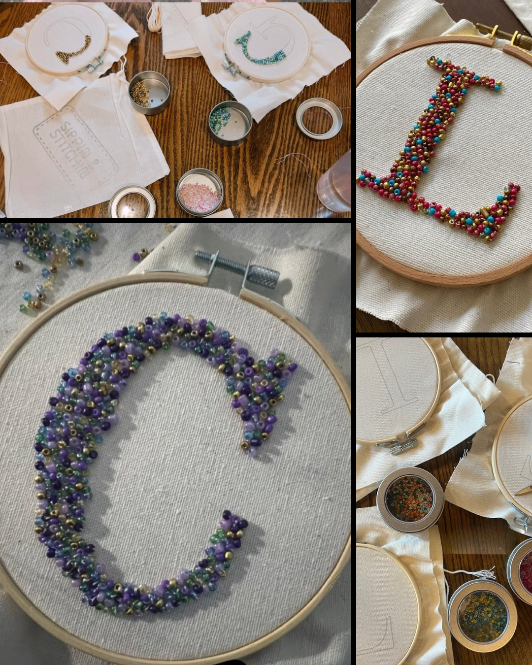 Come join us from 7-9p on Wednesday, December 17th at Sisyphus Brewing for a different kind of night out! During this unique class, we’ll be stitching up our own custom, beaded initial wall-hanging. We’ll be going over beading techniques as well as embroidery basics, so this class is open to beginners as well as those who have stitched before and would like to add beading to their embroidery practice :)