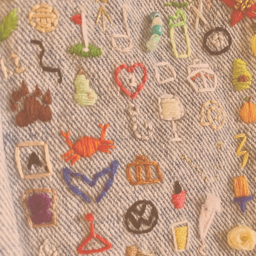 An embroidered journal is a unique way to commemorate your year with stitchin'. Small symbols are used for different happenings in each month - these can be anything! From a cool movie you saw, place you got to check out or even more important happenings that you wanna look back on and celebrate. (check out our “inspo” page!)